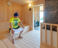 日本古来の薬草蒸し風呂を現代風にアレンジした癒しのサウナです。地元産のヒノキや柚子、ヨモギなど季節に合わせた香りをお楽しみください。