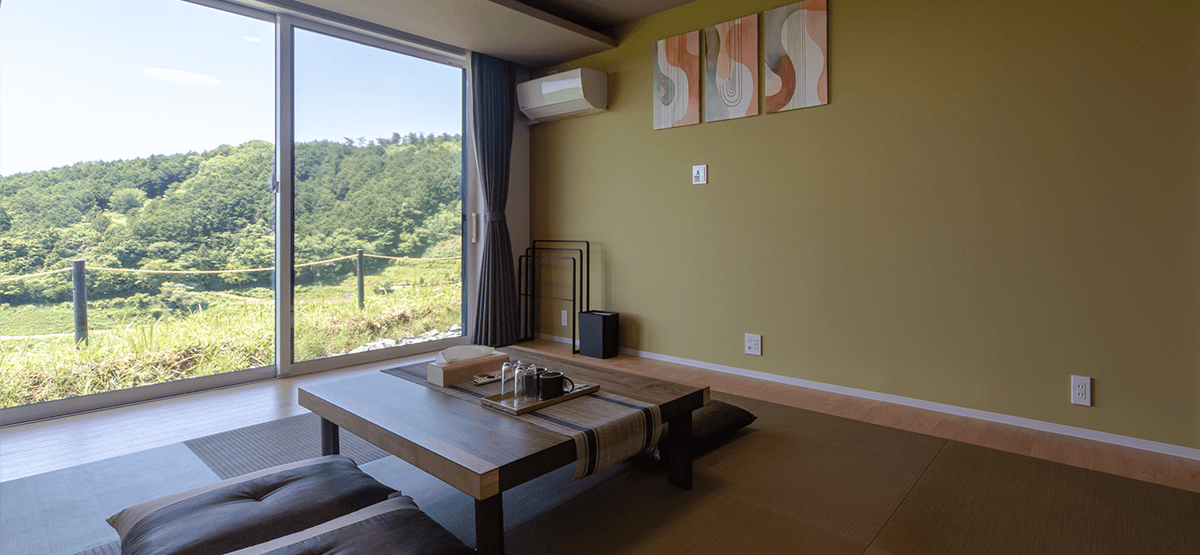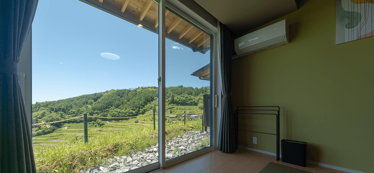 8畳の和室が3室。どちらの部屋からも棚田をご覧いただけます。